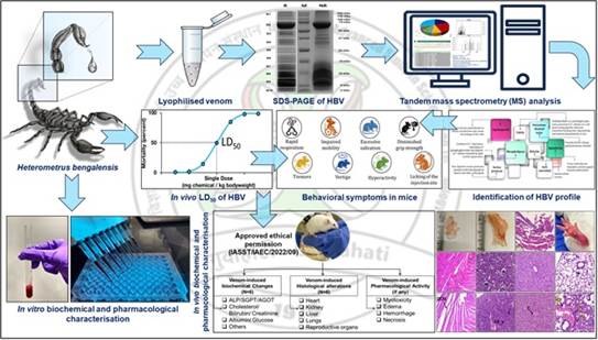 Fig: Graphical abstract: Integrated in vitro and in vivo workflow for the biochemical, proteomic, and pharmacological characterization of Heterometrus bengalensis venom Researchers have cracked the secret