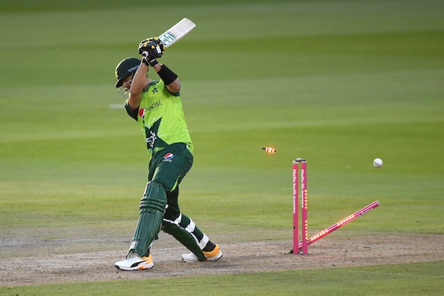 Cricket – Third T20 International – England v Pakistan – Emirates Old Trafford, Manchester, Britain – September 1, 2020 Pakistan’s Haider Ali is bowled out
