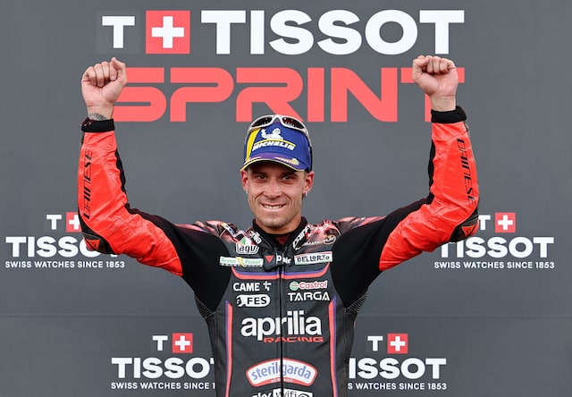 MotoGP – Indonesian Grand Prix – Mandalika International Street Circuit, Mandalika, Indonesia – October 4, 2025 Aprilia Racing’s Marco Bezzecchi celebrates after winning the sprint