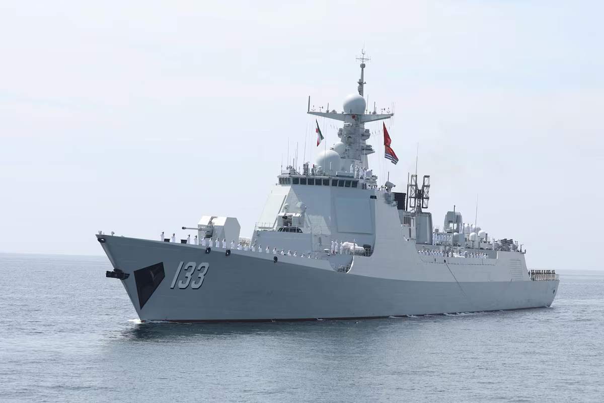 A Chinese warship sails during a joint Navy exercise, March 12, 2025. Iranian Army/WANA (West Asia News Agency)/Handout via REUTERS