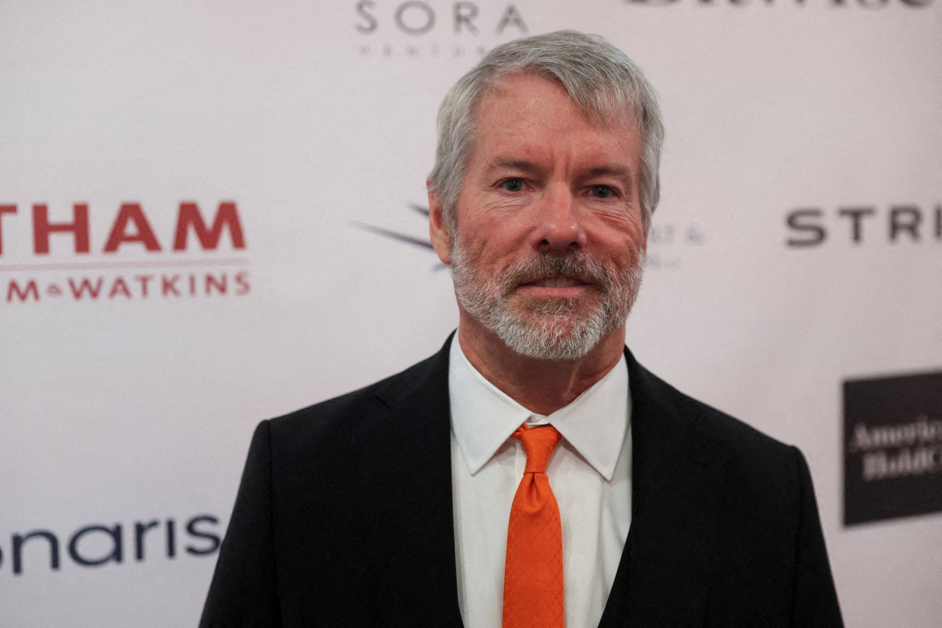Michael Saylor, executive chairman and co-founder of Strategy, poses for a photograph during the “Bitcoin Treasuries Unconference” cryptocurrency event, in New York City, New York, U.S., September 17, 2025. REUTERS