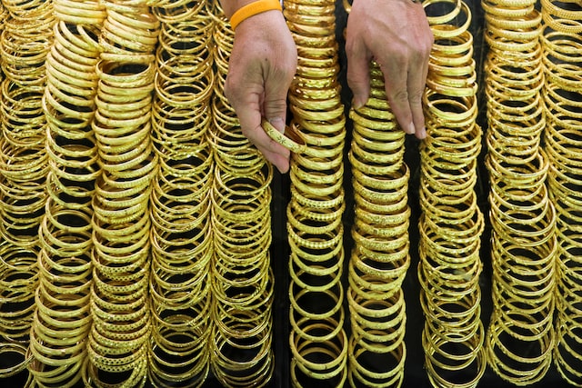 A gold seller arranges gold bracelets at a gold shop in Bangkok’s Chinatown, Thailand, January 27, 2025. REUTERS Aug 4 (Reuters) – Gold prices