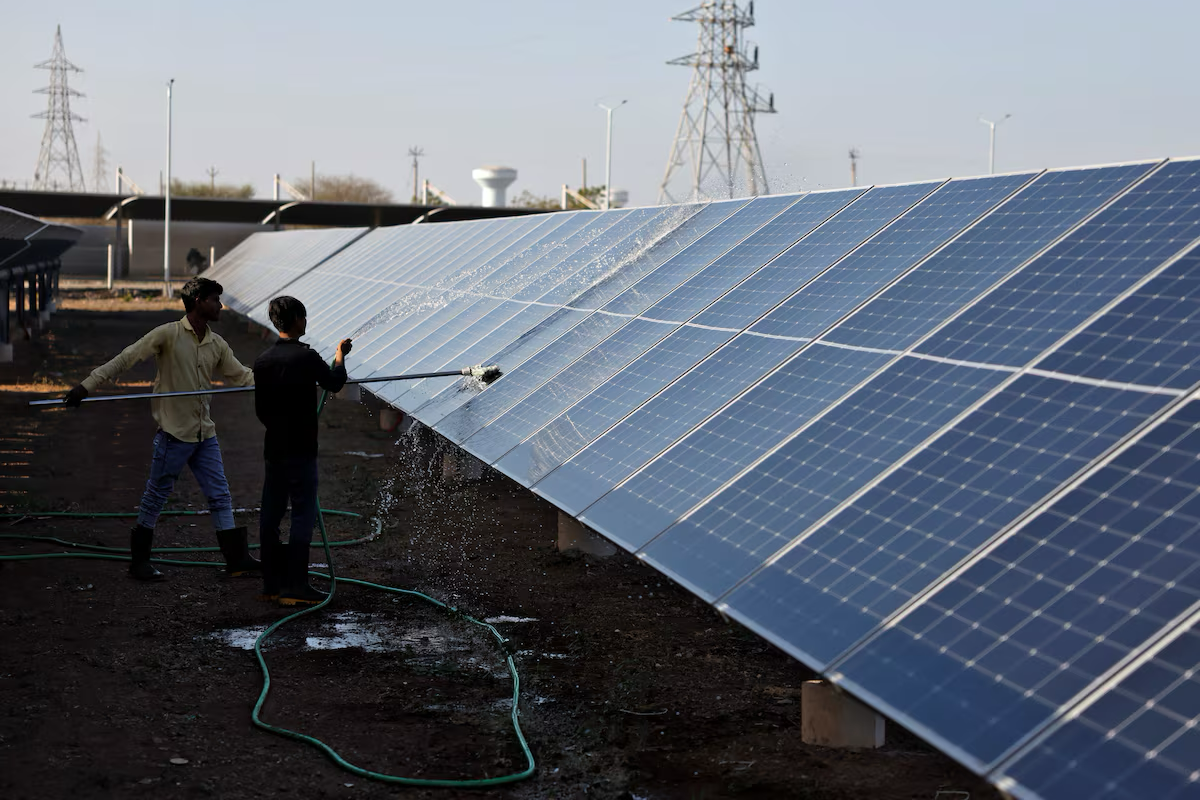 Workers clean photovoltaic solar panels outside Fiotex Cotspin cotton yarn manufacturing factory at Rajkot, Gujarat, India, April 14, 2026. REUTERS April 28 (Reuters) – A