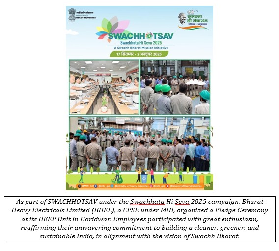 The Ministry of Heavy Industries (MHI) actively participated in the nationwide Swachhata Hi Seva – 2025 campaign, organized from 17th September to 2nd October 2025 under the