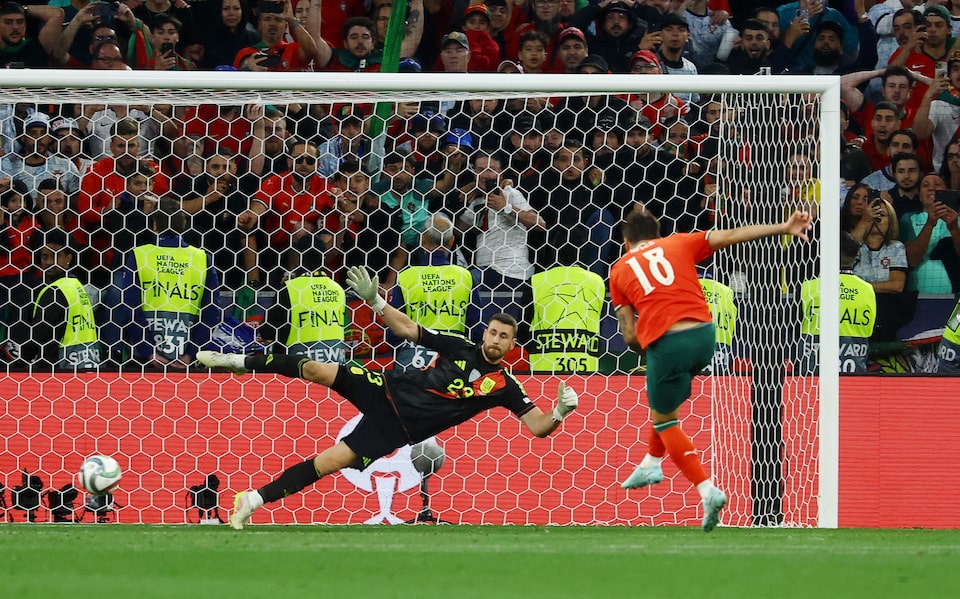 Soccer Football – Nations League – Final – Portugal v Spain – Allianz Arena, Munich, Germany – June 8, 2025 Portugal’s Ruben Neves scores a