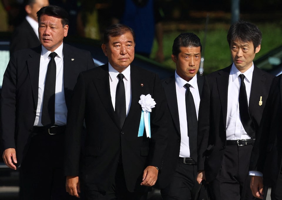 Japanese Prime Minister Shigeru Ishiba attends an event marking the 80th anniversary of the Atomic Bombing in Hiroshima, western Japan, August 6, 2025. REUTERS