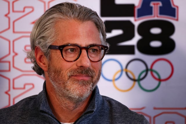 LA28 Chairperson and President Casey Wasserman attends a press conference held by the International Olympic Committee Coordination Commission for the Los Angeles 2028 Olympic and