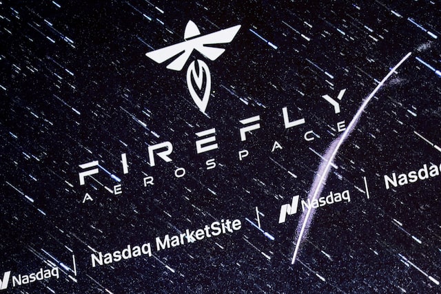 A screen displays the Firefly Aerospace logo during the company’s IPO at the Nasdaq MarketSite in New York City, U.S., August 7, 2025. REUTERS (Reuters)