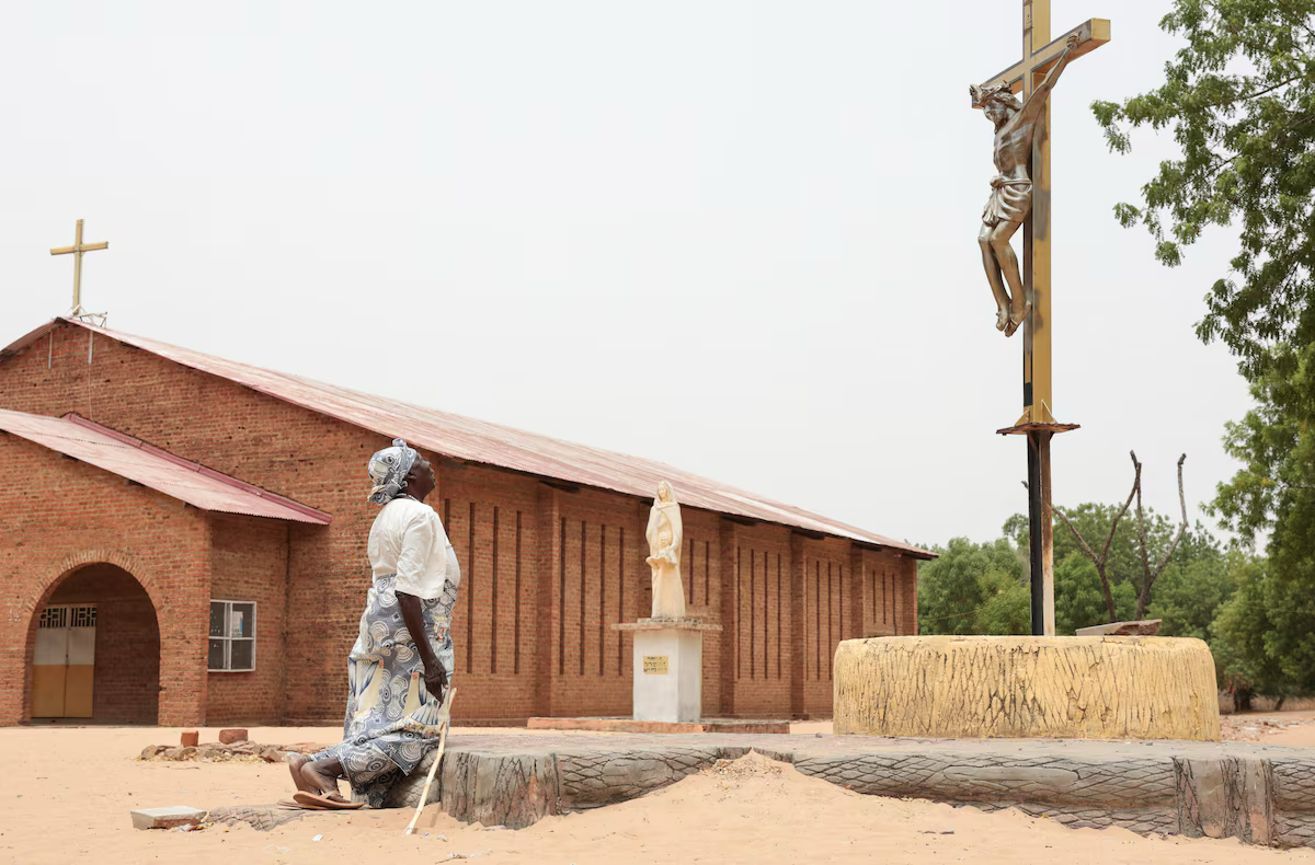 A Catholic worshipper kneels before a crucifix outside the Cathedral of Saint Anne in Yagoua, Cameroon, April 5, 2026. REUTERS VATICAN CITY, April 9 –
