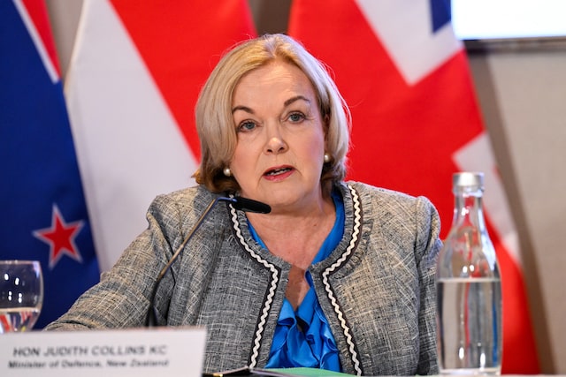 New Zealand’s Defence Minister Judith Collins speaks at the Five Power Defence Arrangements (FPDA) Defence Ministers’ Joint Press Conference Meeting (FDMM) on the sidelines of