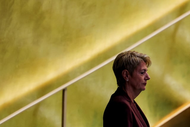 Swiss President Karin Keller-Sutter walks to the podium at U.N. headquarters in New York City, U.S., September 22, 2025. REUTERS ZURICH, Oct 24 (Reuters) –