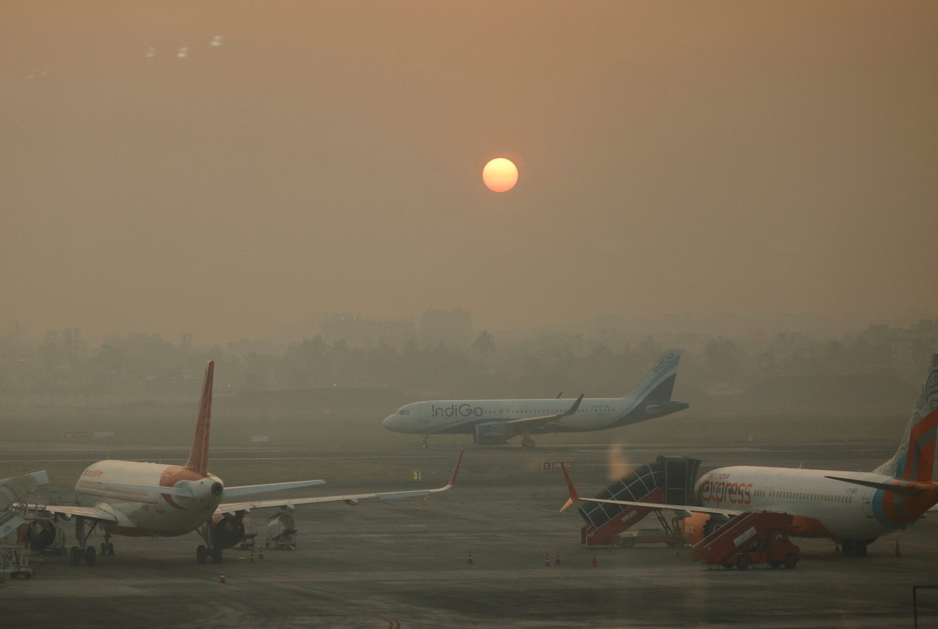 An IndiGo Airlines aircraft taxis on the tarmac on an early morning at the Netaji Subhash Chandra Bose International Airport, in Kolkata, India, November 20,