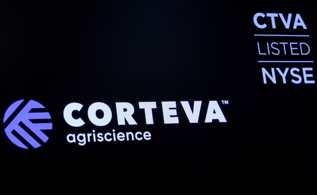 The logo and trading info for Corteva Agriscience is displayed on a screen at the New York Stock Exchange (NYSE) in New York, U.S., June