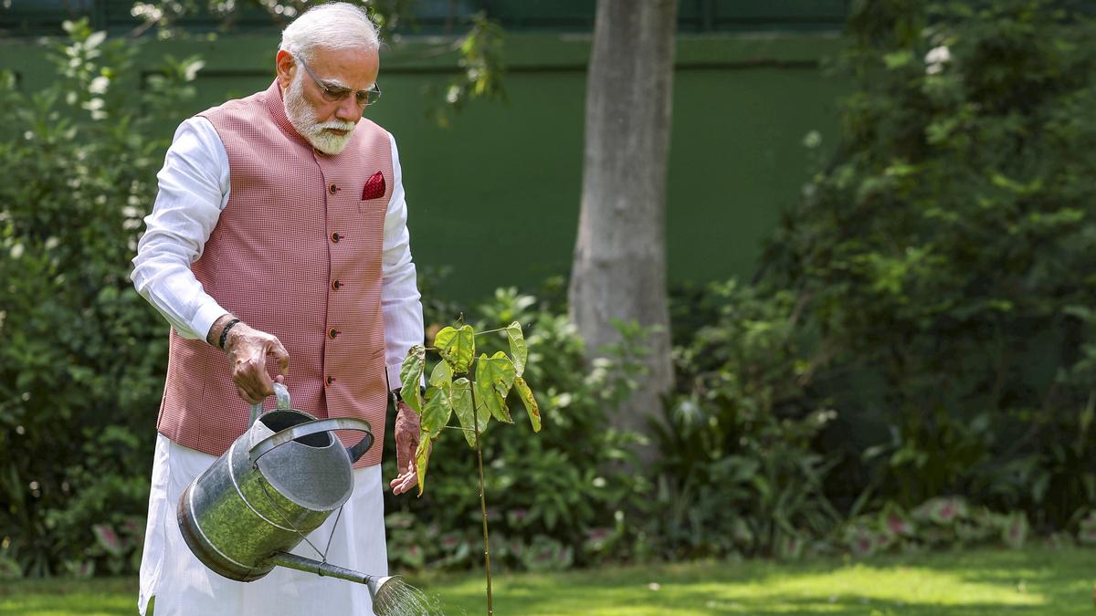On the occasion of World Environment Day, the Prime Minister, Shri Narendra Modi has participated in a tree plantation drive and planted a sapling at