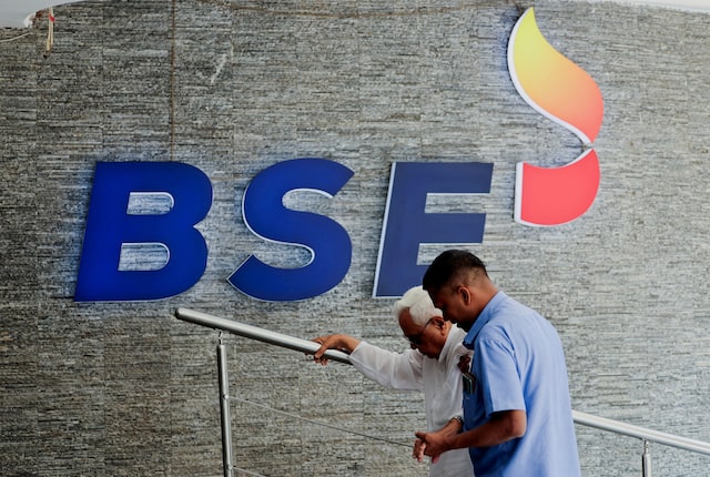 Men walk past a logo of the Bombay Stock Exchange (BSE) in Mumbai, India, April 7, 2025. REUTERS Aug 11 (Reuters) – India’s equity benchmarks