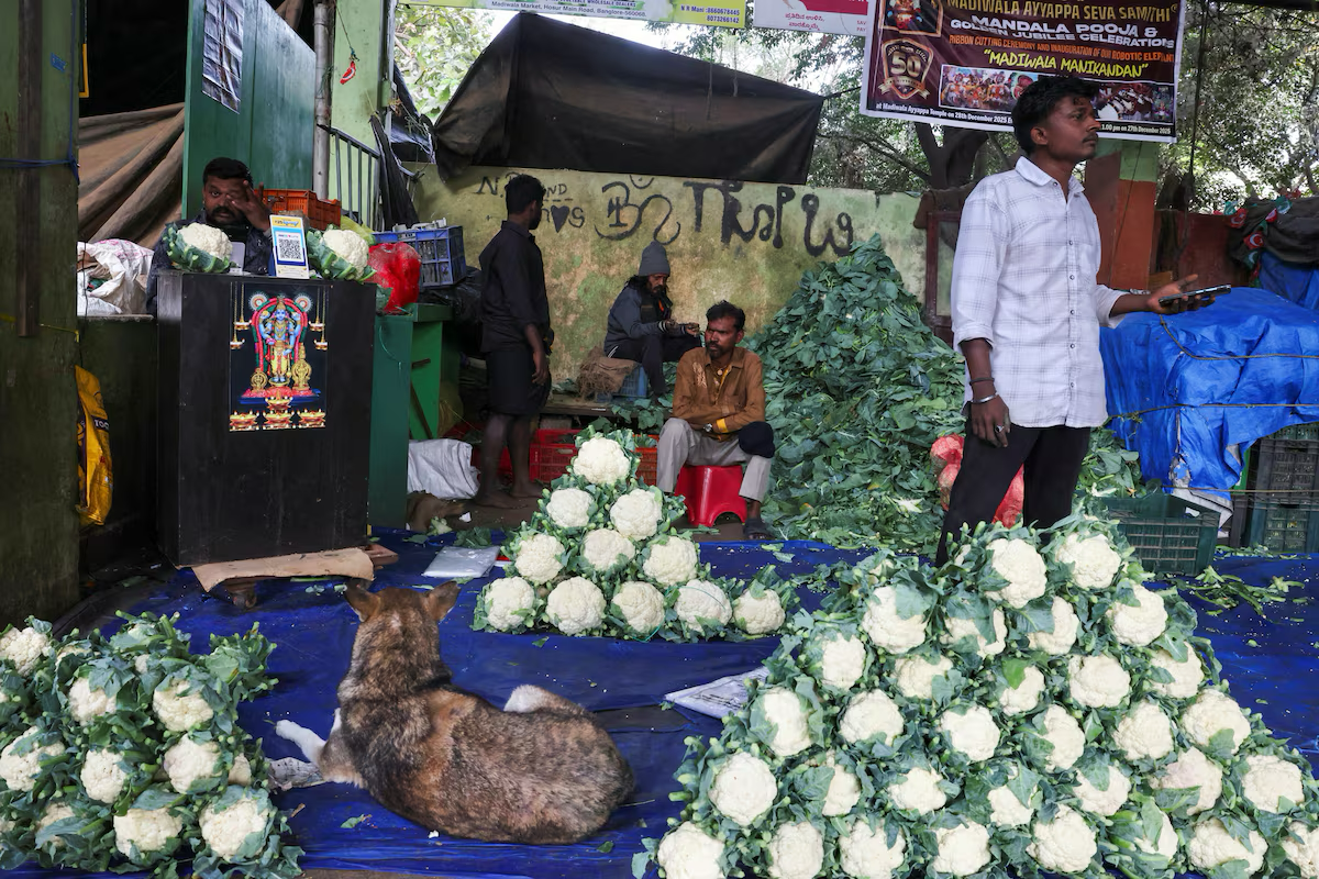 Vendors sit at a vegetable stall selling cauliflowers at a market in Bengaluru, India, January 12, 2026. REUTERS NEW DELHI, Jan 14 (Reuters) – India’s