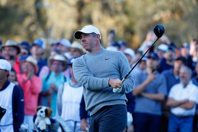 Mar 14, 2025; Ponte Vedra Beach, Florida, USA; Rory Mcllroy hits off of the tenth tee during the second round of The Players Championship golf