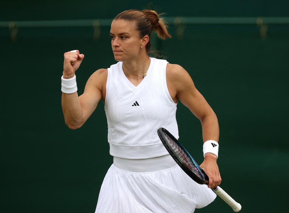 Tennis – Wimbledon – All England Lawn Tennis and Croquet Club, London, Britain – July 1, 2024 Greece’s Maria Sakkari celebrates winning her first round