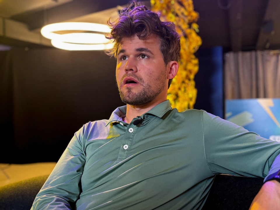 International Chess Federation (FIDE) world number one Magnus Carlsen of Norway poses ahead of his Speed Chess Championship semi-final against Hans Niemann of the U.S.,