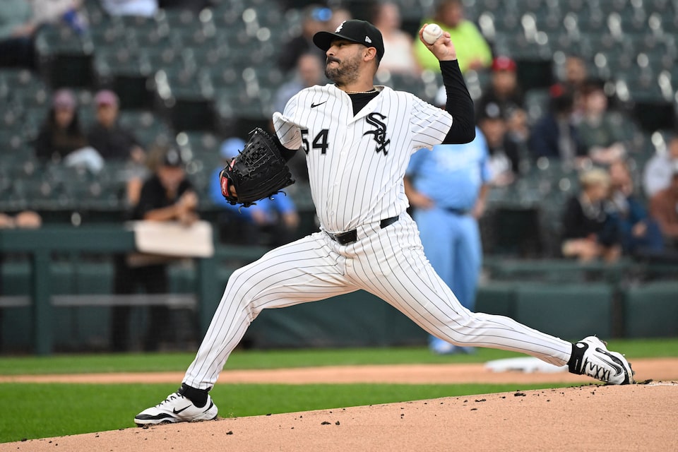 Aug 26, 2025; Chicago, Illinois, USA; Chicago White Sox pitcher Martín Pérez (54) delivers during the first inning against the Kansas City Royals at Rate