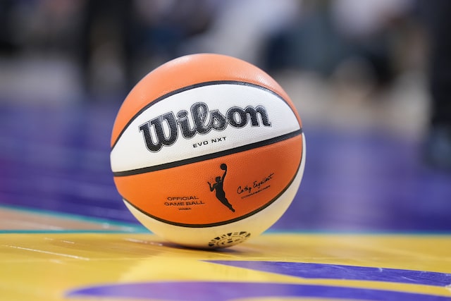 Aug 5, 2025; Los Angeles, California, USA; A general image of the ball in the first half between the LA Sparks and the Indiana Fever