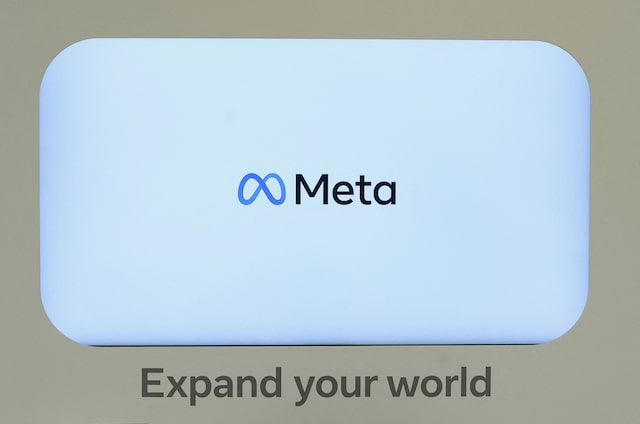 A logo of Meta appears on a screen at the company’s House during the 55th annual meeting of the World Economic Forum in Davos, Switzerland,
