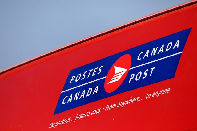 A Canada Post logo is seen as striking workers picket outside a mail processing plant in Ottawa, Ontario, Canada, November 23, 2018. REUTERS (Reuters) –