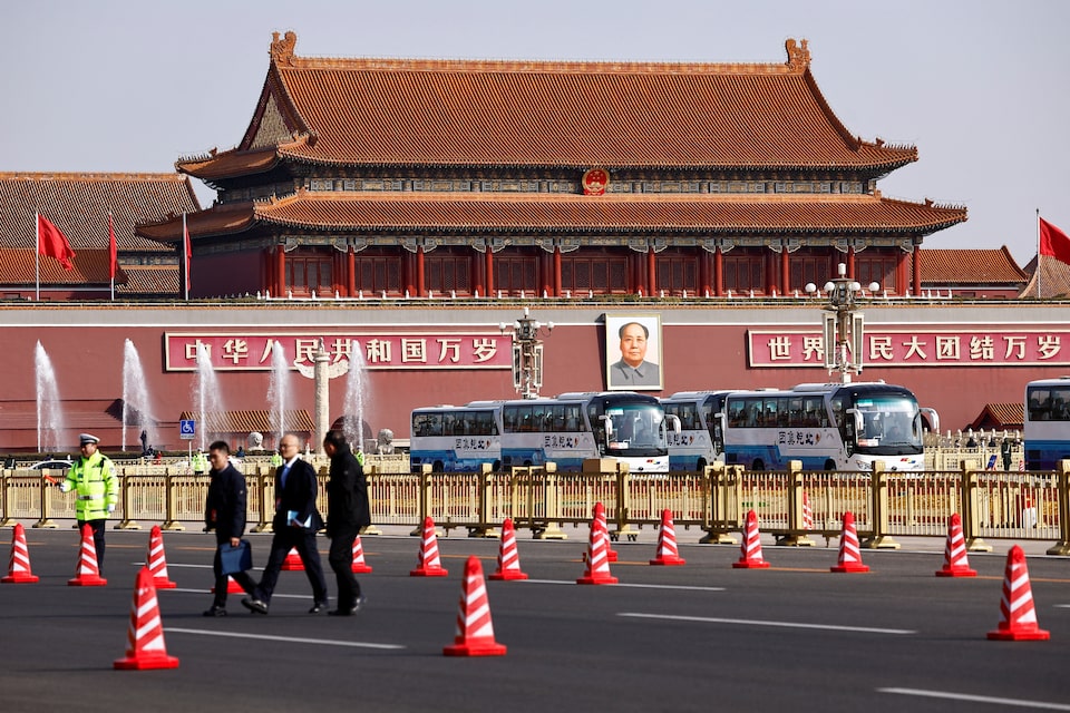 Vehicles carry delegates arriving at the Tiananmen Square, a day before the National People’s Congress (NPC) meeting opens, in Beijing, China March 4, 2025. REUTERS
