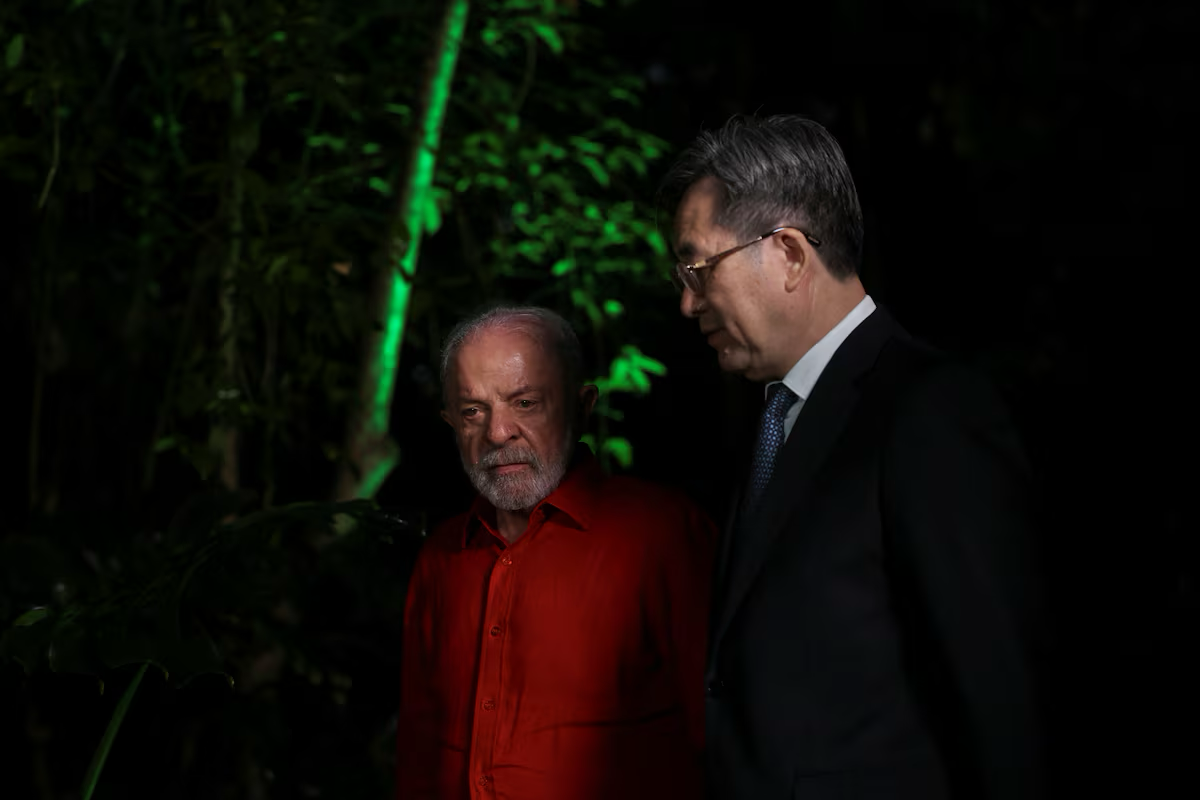 Brazil’s President Luiz Inacio Lula da Silva stands with China’s Vice Premier Ding Xuexiang, ahead of the United Nations Climate Change Conference (COP 30), in Belem, Brazil, November 5, 2025. REUTERS