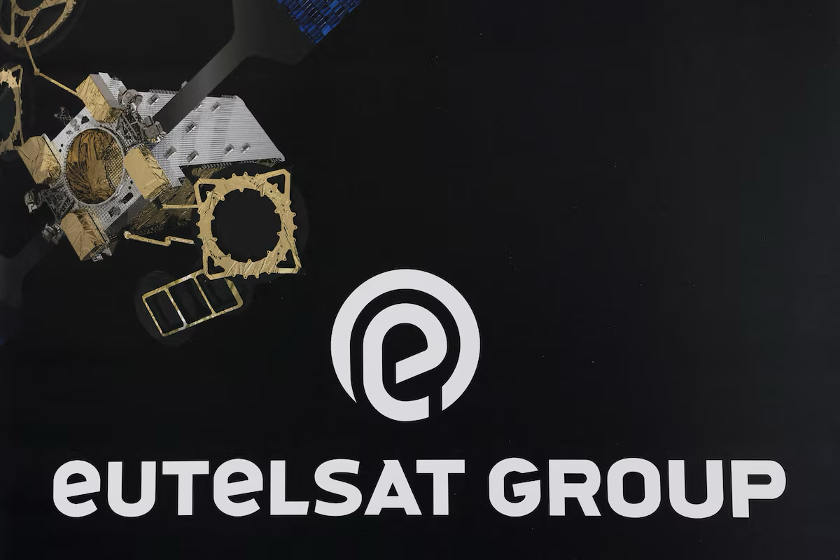 Eutelsat Group logo is pictured at their Paris headquarters in Issy-les-Moulineaux, France, April 3, 2025. REUTERS