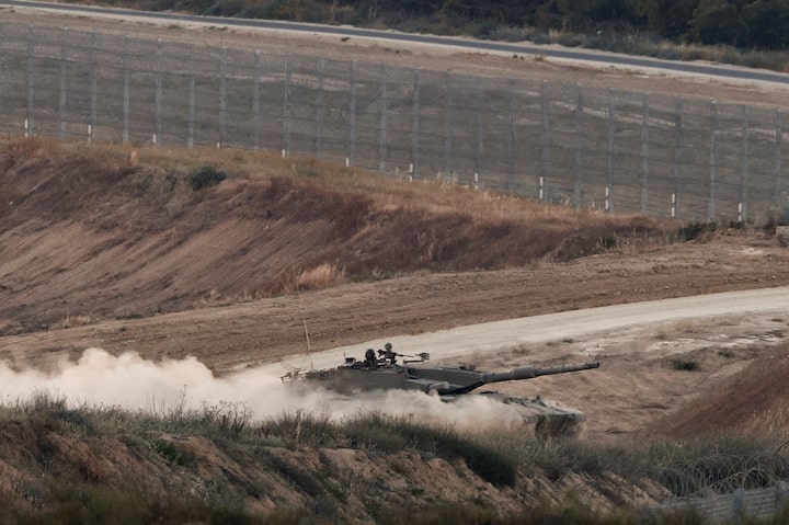 An Israeli tank manoeuvres in Gaza as seen from the Israeli side of the border, April 29, 2025. REUTERS