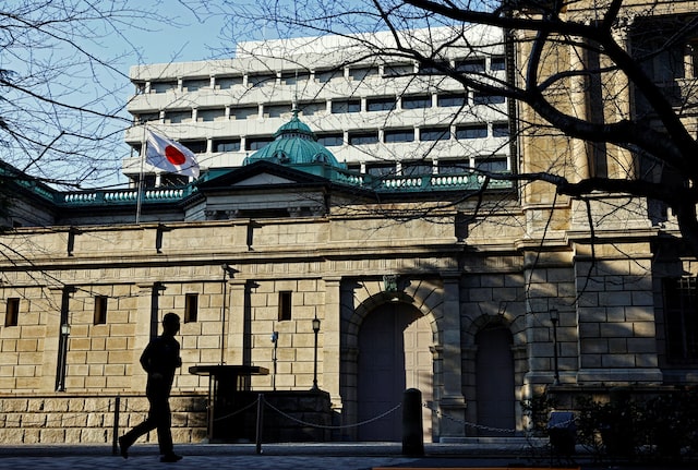 A passerby walks past in front of the Bank of Japan headquarters in Tokyo, Japan January 23, 2025. REUTERS