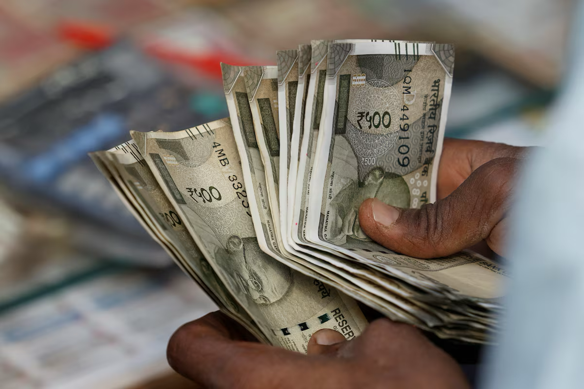 A roadside currency exchange vendor counts notes in New Delhi, India, February 10, 2025. REUTERS