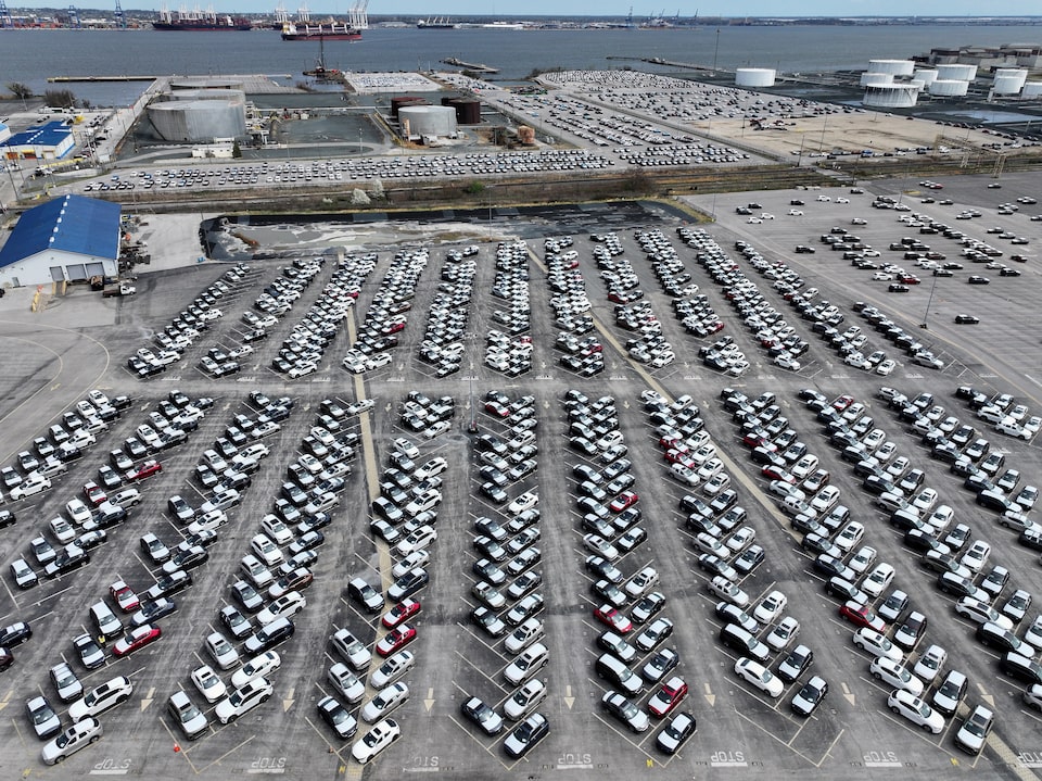 A drone view shows cars on the day U.S. President Donald Trump is set to announce new tariffs, at the Port of Baltimore, Maryland, U.S., April 2, 2025. REUTERS