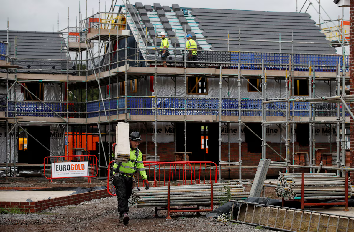 Builders work on a new Barratt Homes housing development near Warrington, Britain, August 6, 2020. REUTERS