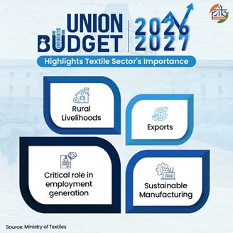 The Union Budget 2026–27 lays emphasis on scaling up manufacturing in strategic, frontier sectors including Textiles. |
