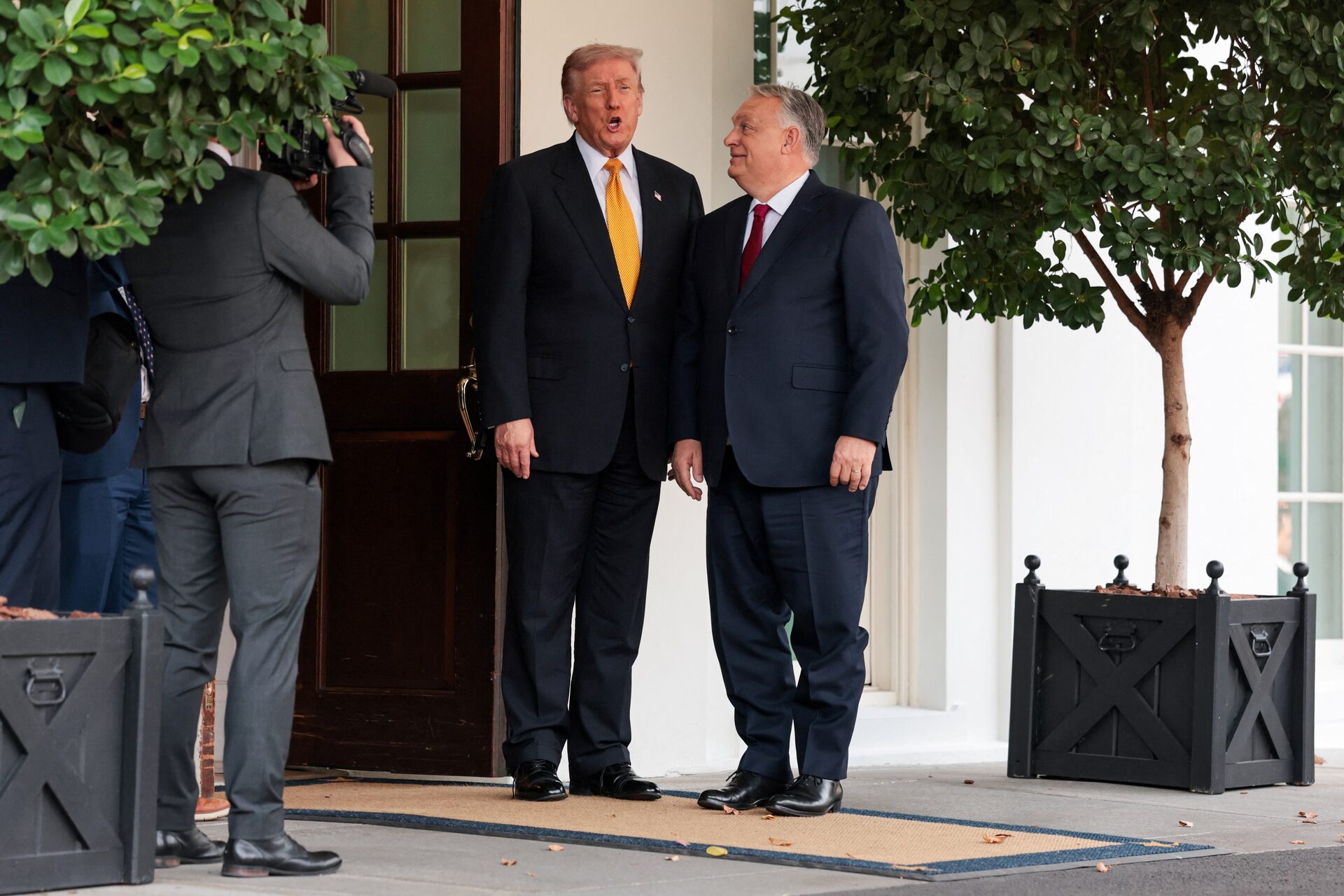 U.S. President Donald Trump greets Hungary’s Prime Minister Viktor Orban at the White House in Washington, D.C., U.S., November 7, 2025. REUTERS